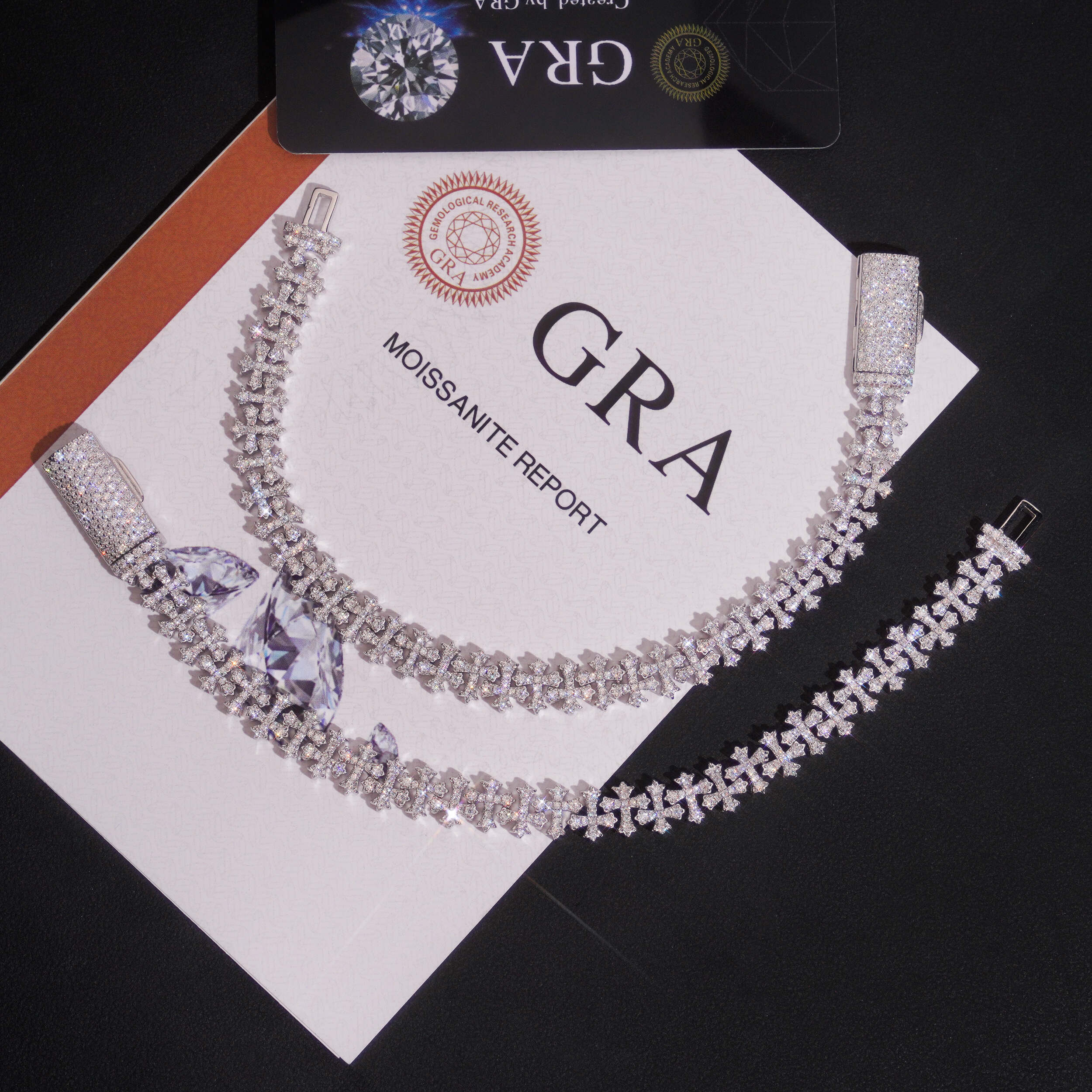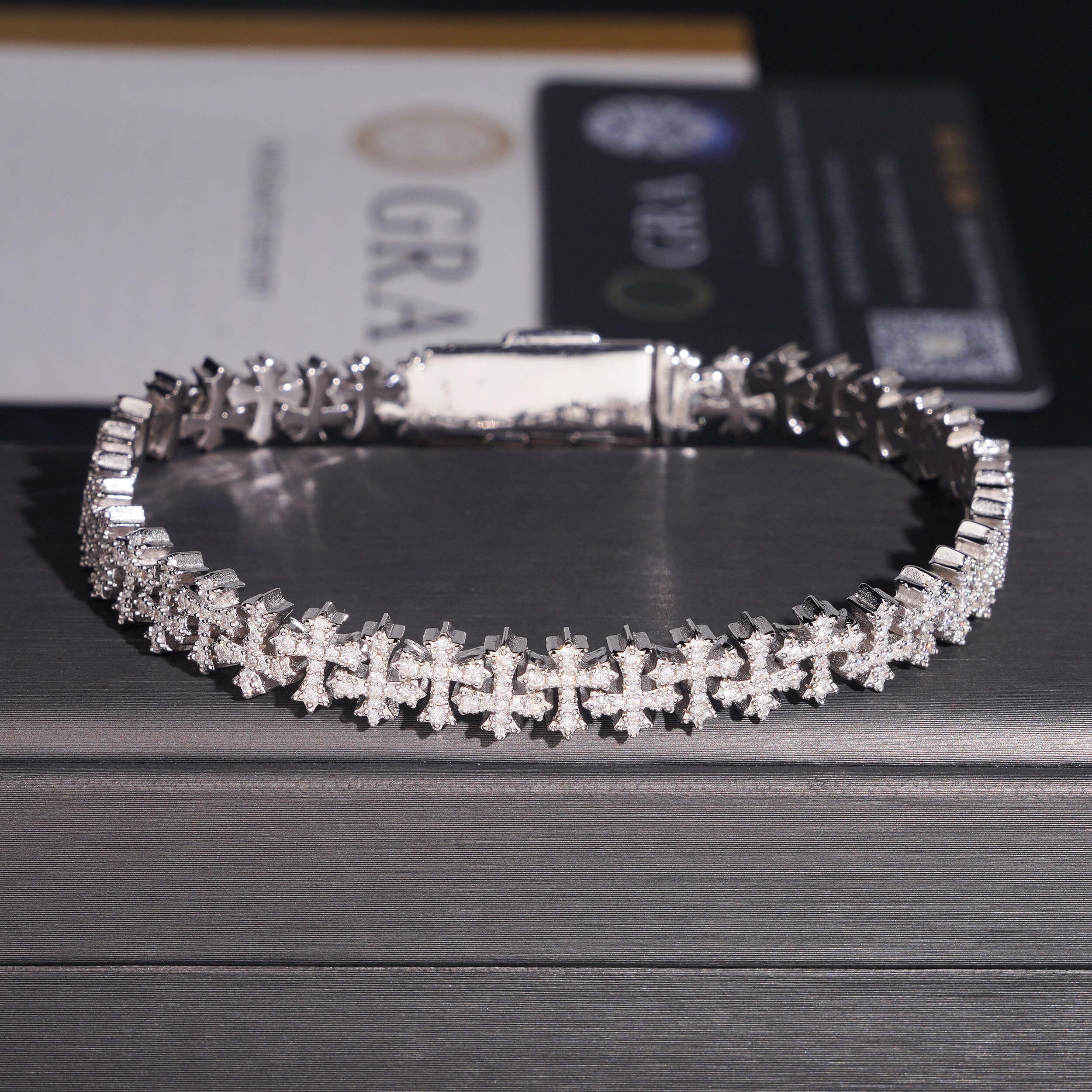 Elevate your wrist game with our Moissanite Crucifix Bracelet, crafted from solid 925 silver and finished in white gold,