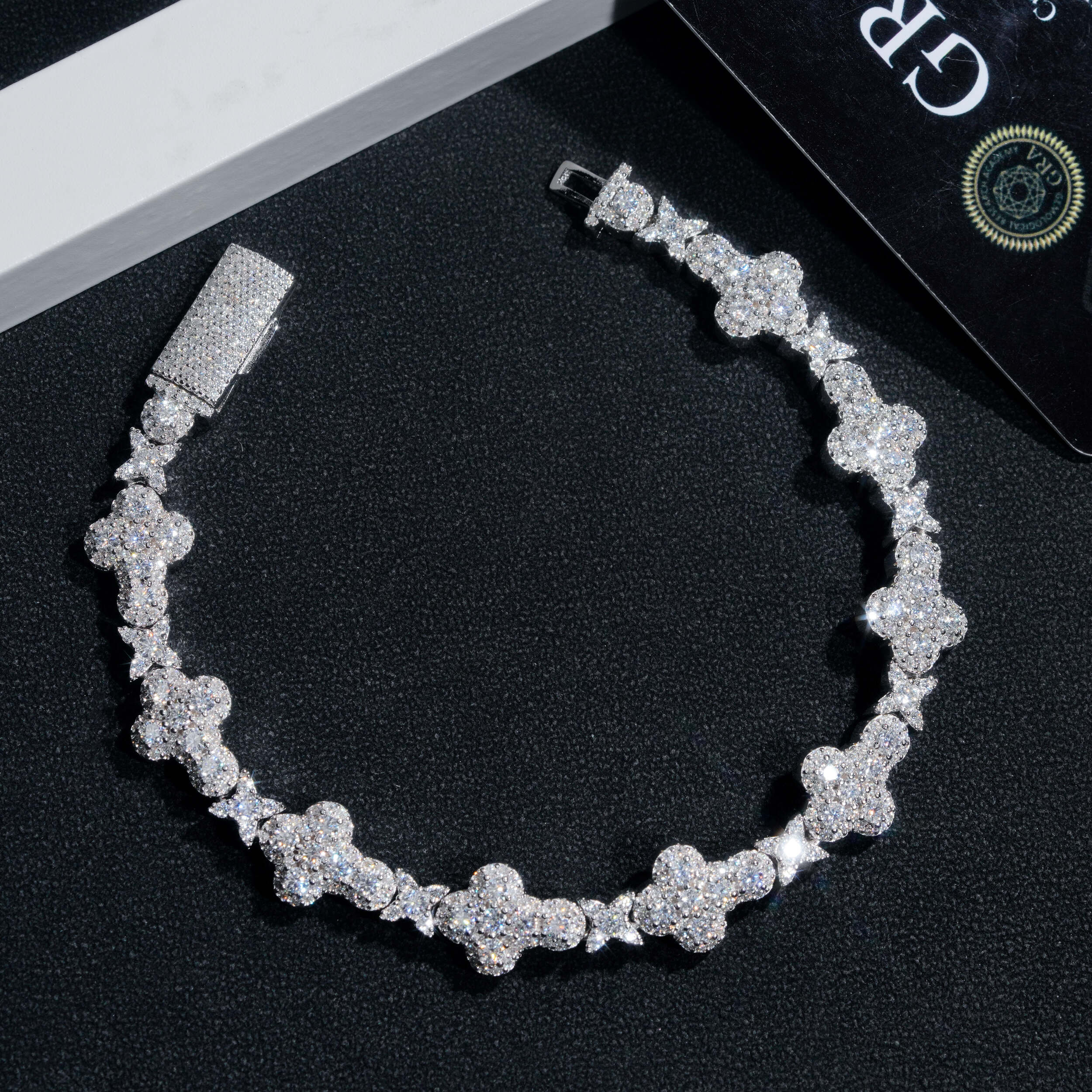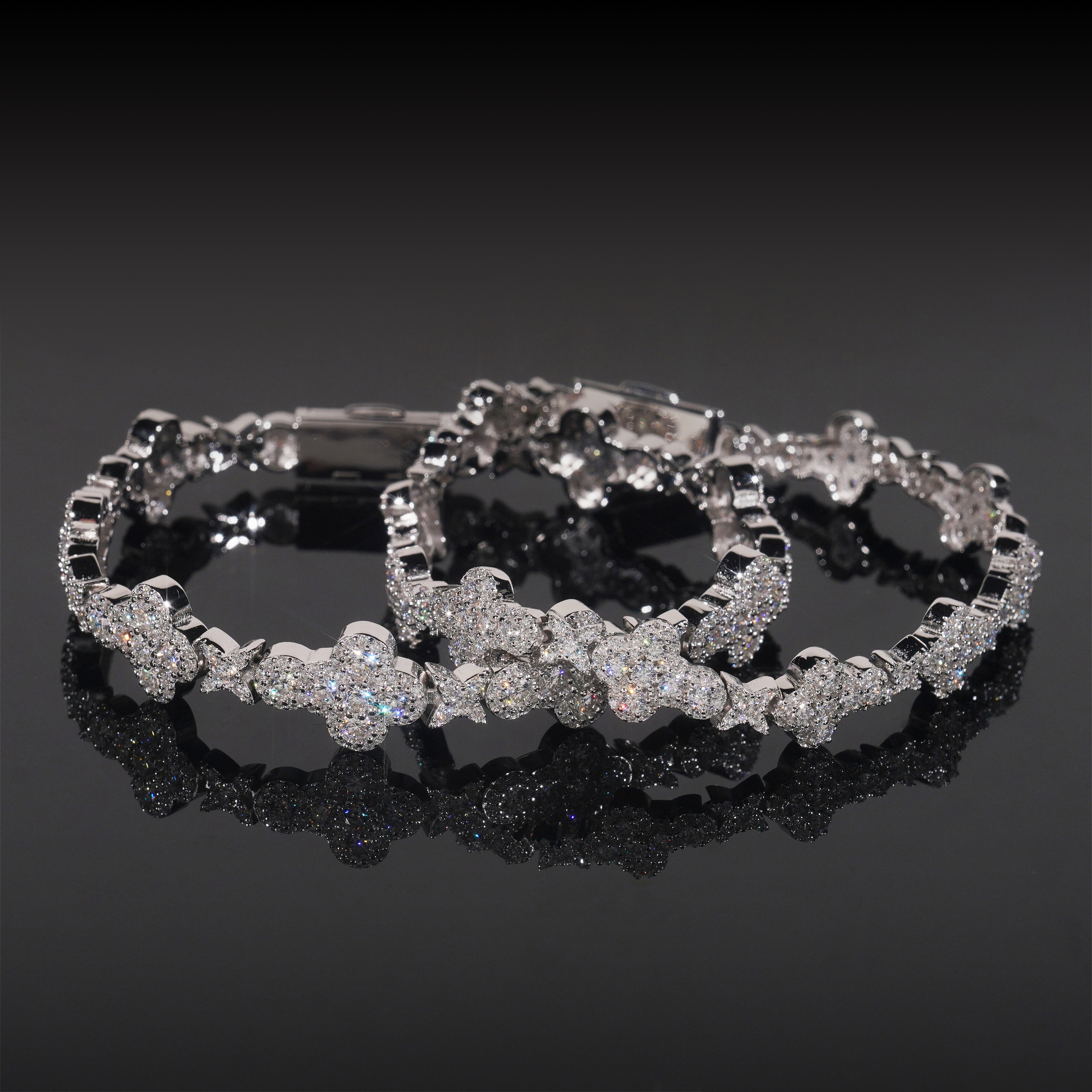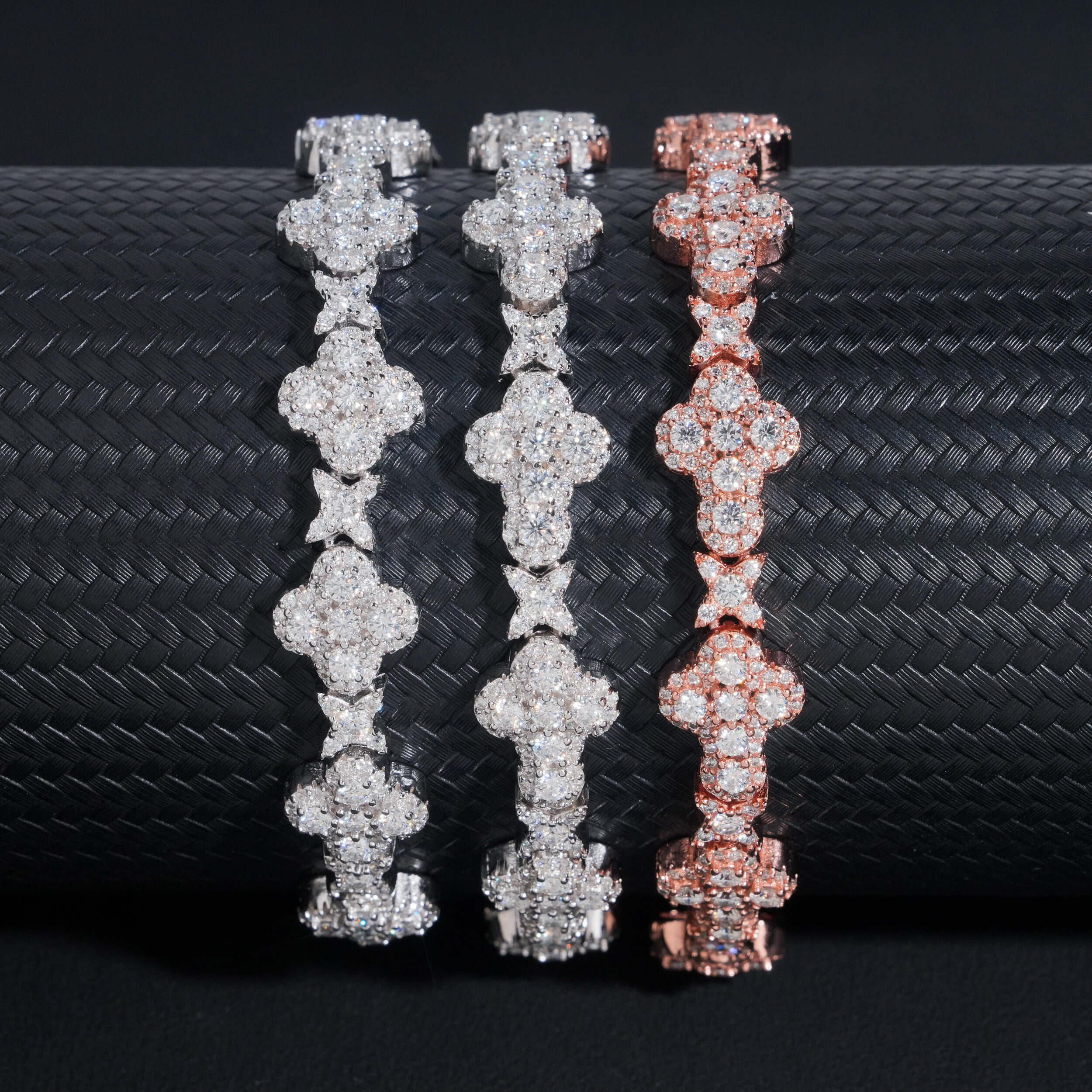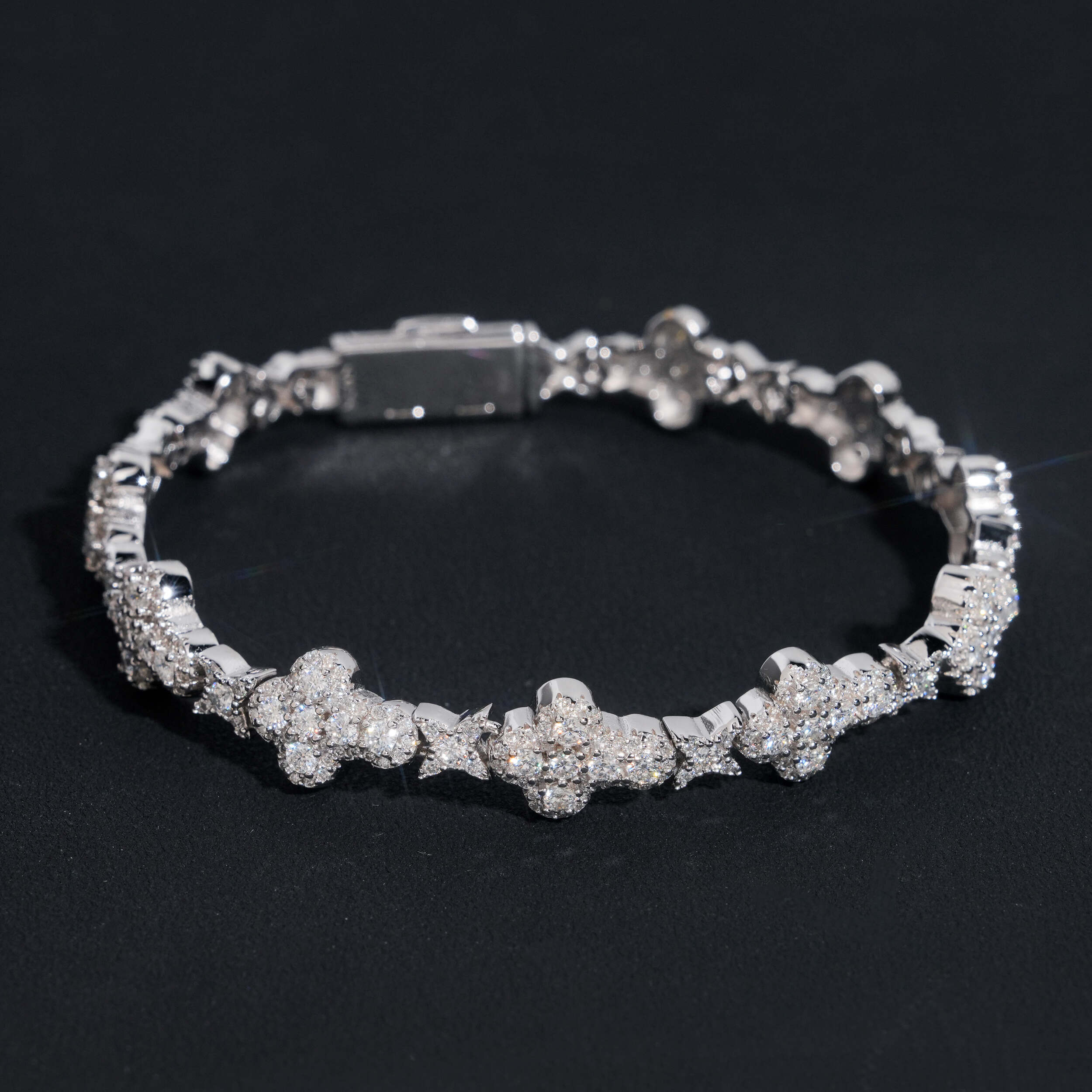 Elevate your wrist game with our Moissanite Cross x Star Bracelet, crafted from solid 925 silver and finished in White gold, Rose gold,